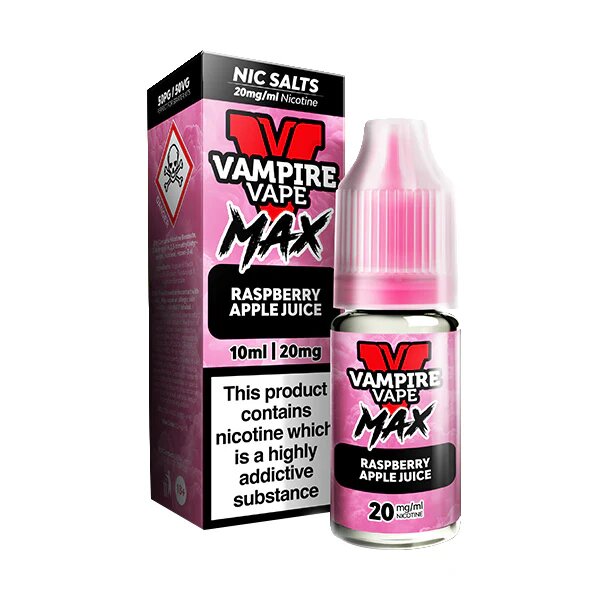 Raspberry Apple Juice Nic Salt E-Liquid by Vampire Vape Max is classic drinks flavour with a twist. Enjoy a crisp apple juice on the inhale topped with a sharp, juicy raspberry on the exhale.